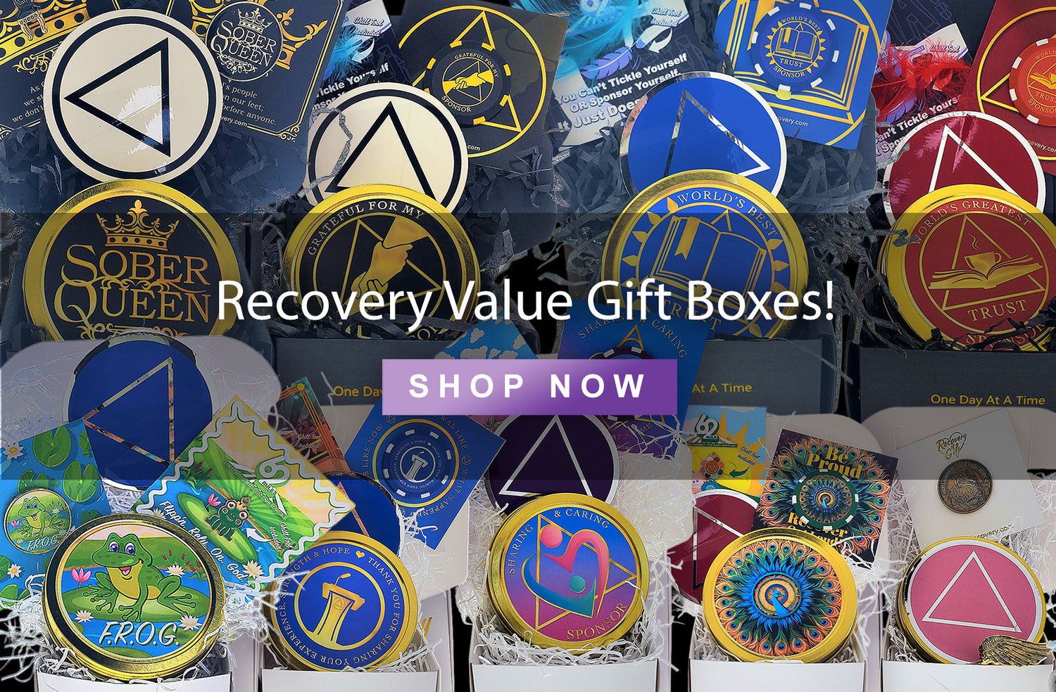12 Step Recovery sobriety tokens, chips, coins and medallions are at the top of our list of high-quality, specialty gifts. These pieces are so important to commemorate our special birthdays, anniversaries and milestones (including clean time chips) and to acknowledge each other's accomplishments. We also feature collections of gift and anniversary cards for those special moments and a full selection of the essential 12-Step books, journals and meditation guides.