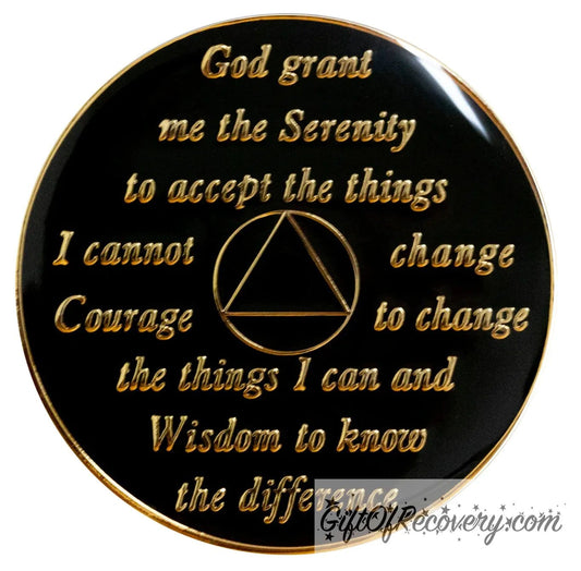 On the back of each sobriety chip is written the much-beloved Serenity Prayer.