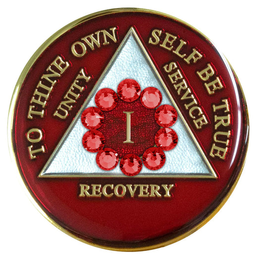 AA Recovery Medallion - Unity Red Bling Crystalized on Red