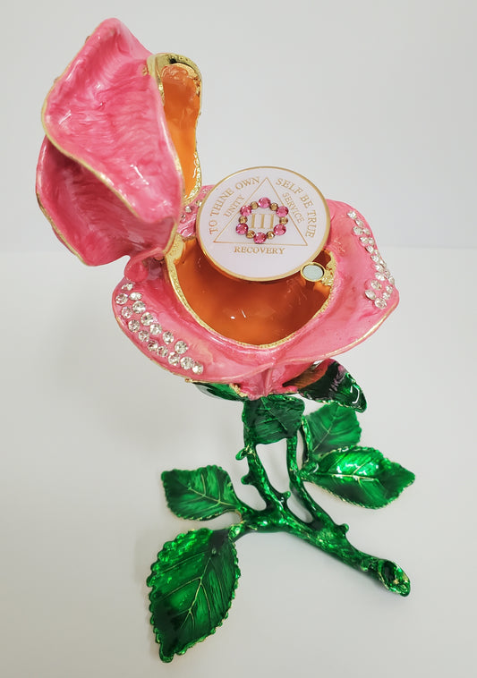 Pink Rose Collector Bling Box/Sobriety Chip Holder (with "Bloom" Chip)