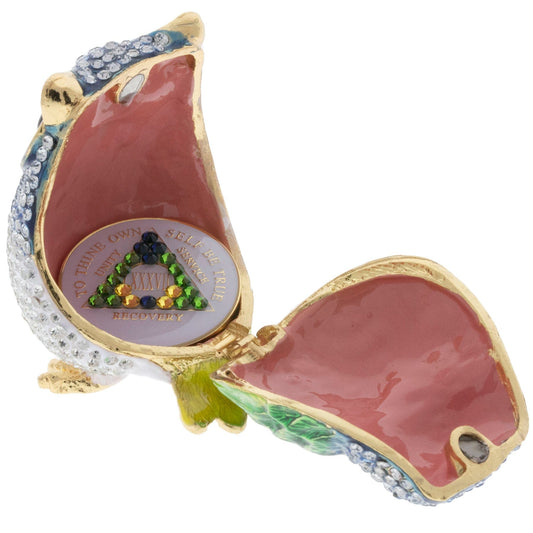 Blue Owl Bling Box/Sobriety Chip Holder (with Chip)
