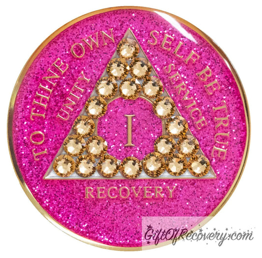 AA Recovery Medallion - Crystallized Glitter Pink Fuchsia Bling