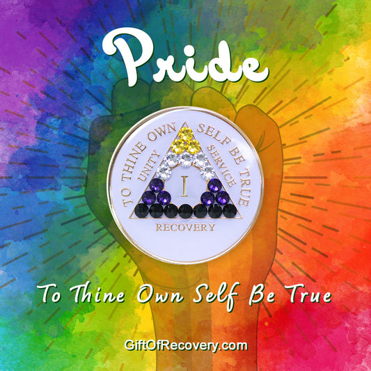 AA Recovery Medallion - Nonbinary Flag Bling Crystallized on White