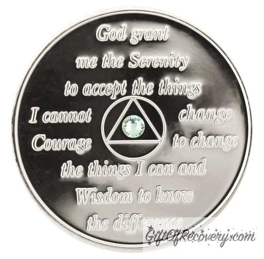 Sobriety Chip AA Rainbow Girly Girl Silver