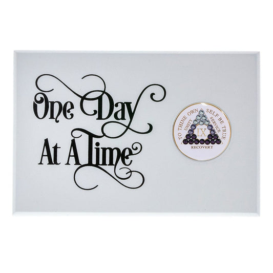 One Day At a Time Coin Holder Plaque White (Horizontal)