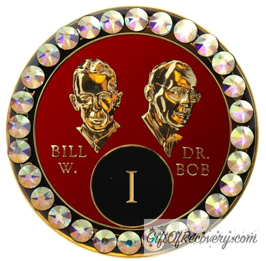 AA Recovery Medallion - Aurora Borealis Bling Crystalized Red Bill & Bob