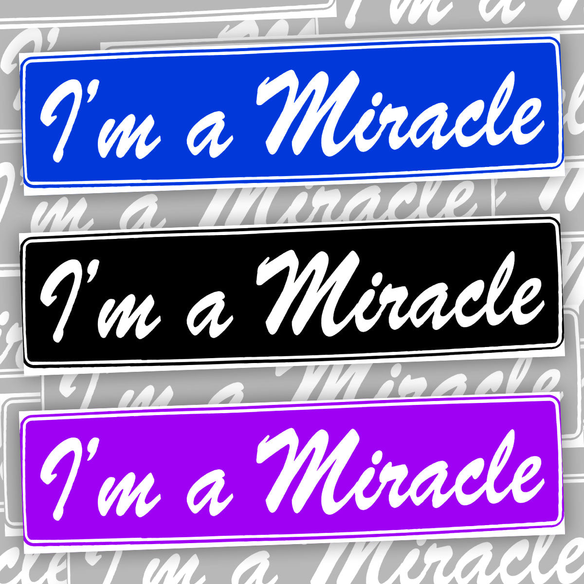 Perfect for cars, personal journals, or any special space, the I'm a Miracle bumper sticker proudly declares the victory of recovery and the miracle of positive change.